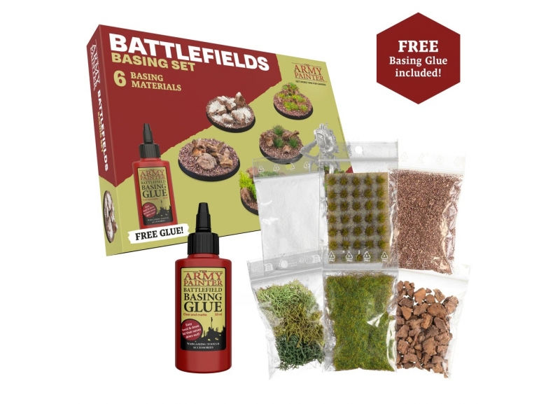 This amazing set has been designed to give the wargamer a “one box fits all” for you miniature bases. Includes all the basic basing materials you need to make any base for your miniatures. It also includes a free 50ml Battlefields Basing Glue as well as The Army Painter Technique Painting Guide.