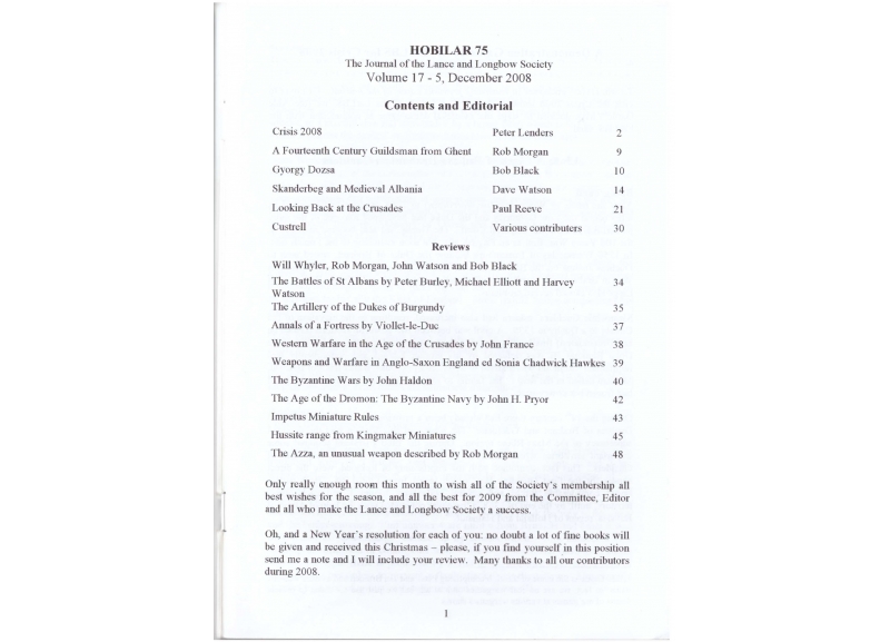 The Hobilar no.75 the journal of the Lance & Longbow Society.