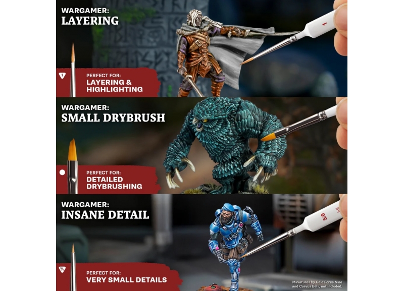 The Most Wanted Set has the Wargamer brushes you need to basecoat, layer, and highlight your miniatures, now in eco-friendly packaging—a small change that makes a big difference.