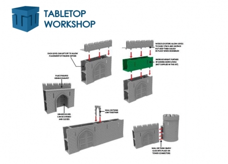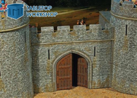 This pack contains 1 Modular Wall Gate, for Castle or City Wall contruction, consisting of 4 hard plastic easy to assemble 28mm scale model building parts.