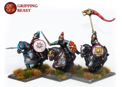 Inside you will find parts to assemble 12 finely-detailed armoured cavalry, fighting with either spear, sword or axe, suitable for use in Swordpoint. The box also includes dracos for conversion purposes. These figures make an excellent centre-piece for your Goth army or aliies for Late Romans. Parts from this box are compatible with most parts from all our other box sets so you can do many, many conversions.