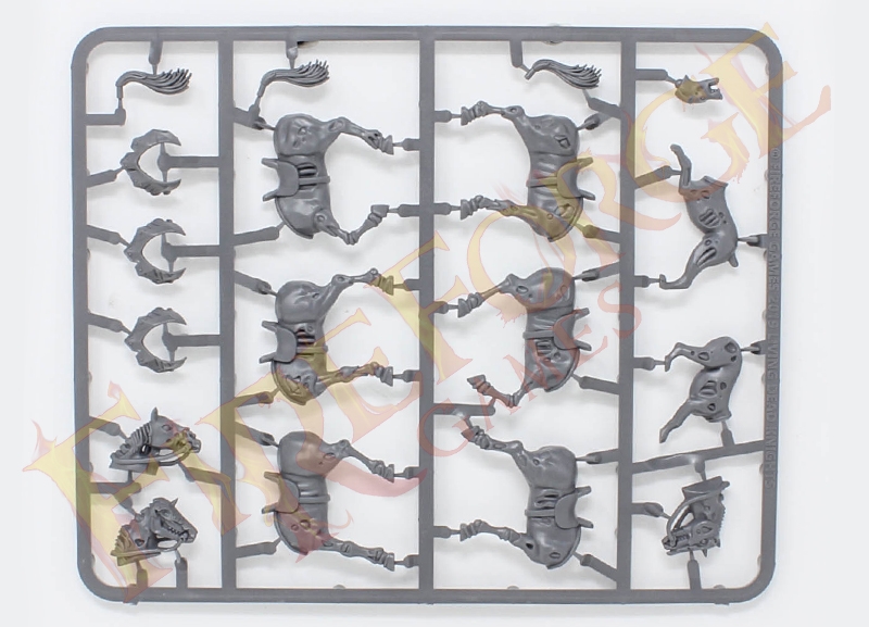 Single sprue of undead horses (3 models) and 1 undead war dog, bases not included.