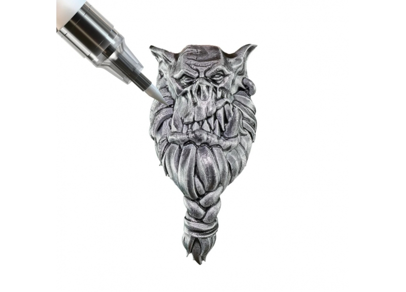 Brilliant metallic silver for weapons, armour, and mechanical details. Metallic pigment stays consistent from first stroke to last.