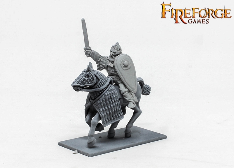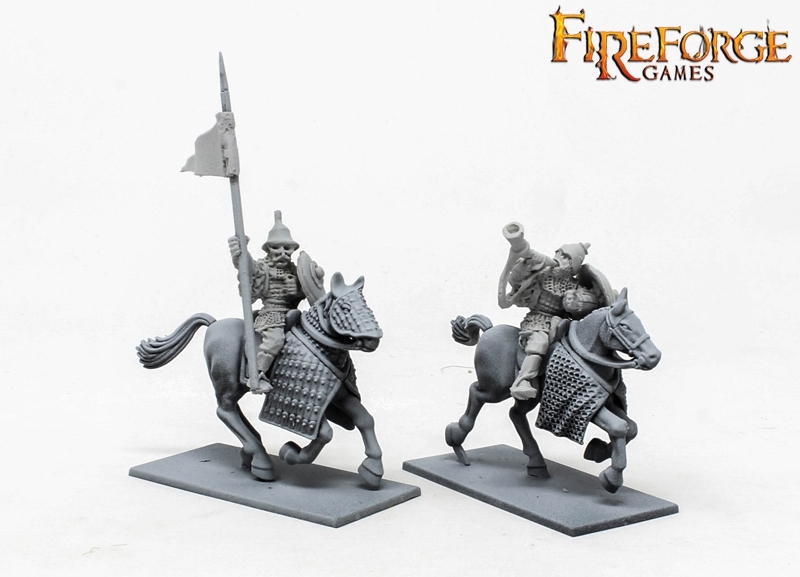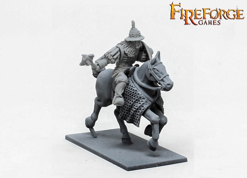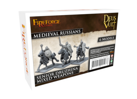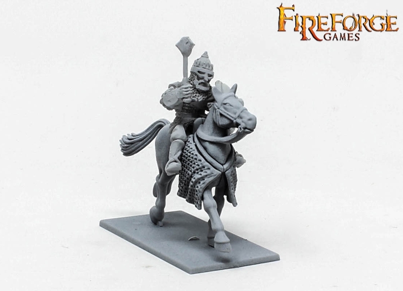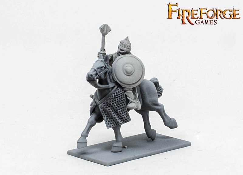 This box contains 6 Druzhina Cavalrymen in fine resin armed with swords or maces.
