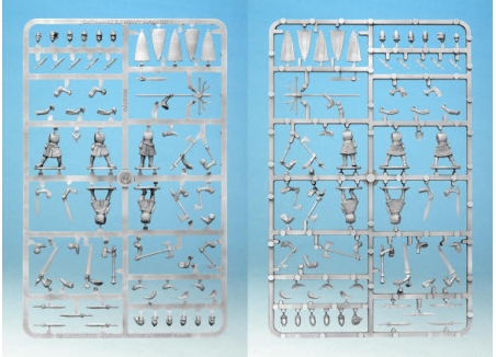 This box set contains enough parts for you to build 30 Elf Heavy Infantry. We provide you with enough weapon options to make them all 2 Handed Weapons or all hand weapon and shield. These make either Warriors or Linebreakers from the Oathmark army lists. Each frame also contains a standard bearer and officer option. So you could have a giant unit of 30 Elf Warriors with an officer and standard bearer, or six units of five Elves with an officer and Standard beaer each!
