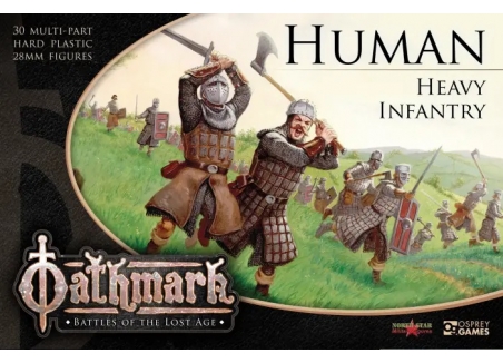 This boxed set offers enough parts to build 30 Human Heavy Infantry for your Oathmark armies. These can be armed as Warriors with hand weapons and shield or equipped with two-handed weapons to act as Linebreakers, and parts are also included to add banner bearers and officers to their ranks.