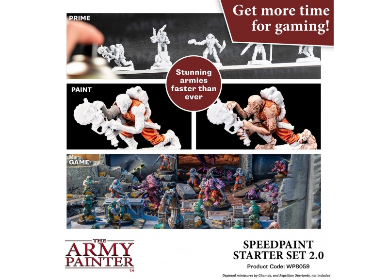 The NEW Speedpaint 2.0 Starter features a comprehensive collection of the hobby’s favorite one-coat painting solution reformulated to meet the demands of painters of all skill levels. Combined with an innovative resin medium solution that flows perfectly over your miniatures creates an unparalleled painting solution to help you get more time for gaming.