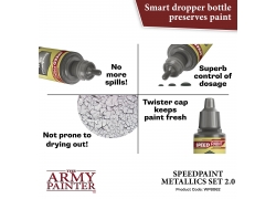Using an innovative resin medium that flows perfectly over your miniatures, Speedpaint Metallics create an unparalleled painting solution to help you get more time for gaming.