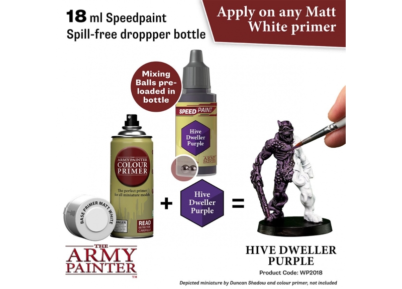 Speedpaint is truly a one-coat painting solution. Simply apply one rich coat of Speedpaint directly over a primed miniature and you are done! The Speedpaint will leave that part of the model with both intense shading, vibrant colour, and a highlight effect in one application.