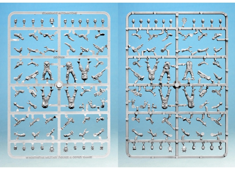 This boxed set offers enough parts to build 20 cyborg monstrosities for Stargrave that can be used to menace independent crews. These parts can also be combined with components from other Stargrave boxed sets to create characters with cybernetic implants or to add even more variety to an automaton horde.