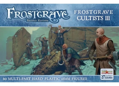 The Frostgrave Cultists III box set contains enough parts to make 20 different figures. There are multiple heads, arms, weapons and accoutrements per frame, no two warbands will ever be the same.