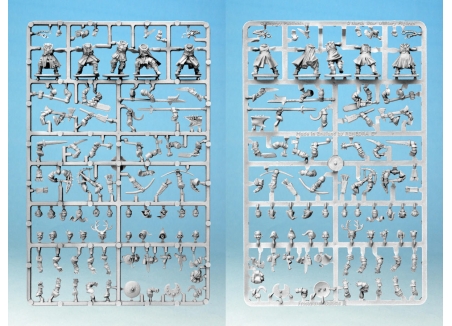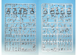 The plastic figures are 28mm sized, supplied unpainted and require assembly with glue. We recommend you use glue designed for plastic to get the best results.