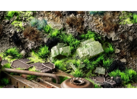 Tufts with a garish green color. Ideal to create post-apocalyptic wastelands, evoking a sense of desolate beauty amidst the debris of a nuclear aftermath. Let your imagination run wild as you create immersive tabletop ambiances that transport you to a distant and treacherous realm.