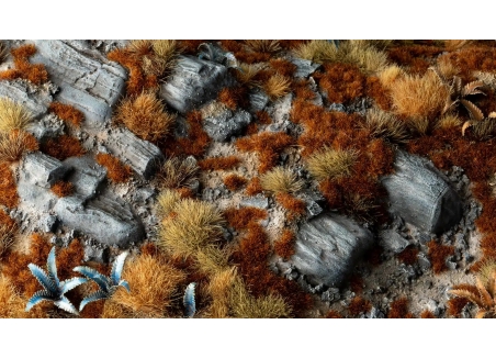 Low tufts with a blend of reddish-brown tones perfect to simulate dry creeping grasses, alien flora or coral reefs. In combination with other colors and sizes they provide a fascinating color and height variation to your scenes.