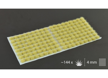 4mm tall tufts in a beige color. One plastic sheet of 14.5cm x 6.5cm full of Gamer's Grass tufts. Tufts are 4mm tall. Just pop-out the tufts from the sheet of plastic and glue them to your models.